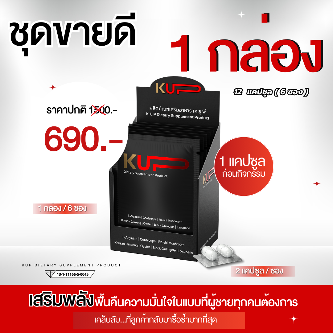 KUP เคอัพ ผลิตภัณฑ์เสริมอาหารสำหรับผู้ชาย 1-2 แคปซูล ก่อนกิจกรรม 20–30 นาที✔ สูตรสมุนไพรธรรมชาติ 100% ✔ ช่วยฟื้นฟูพลัง เสริมความแข็งแรงและความมั่นใจ ✔ ทานได้ทั้งแบบดูแลระยะยาว และก่อนกิจกรรม ✔ ไม่ใส่สารต้องห้าม ไม่มี Sildenafil / Steroid ✔ ผลิตตามมาตรฐาน อย. / GMP / HACCP / ISO 💡 รูปแบบบรรจุ : แบบซอง (Sachet) 1 ซอง = 2 แคปซูล 💡 วิธีรับประทาน – ดูแลสุขภาพทั่วไป : วันละ 1 แคปซูล – ก่อนกิจกรรม : ครั้งละ 1–2 แคปซูล ก่อนกิจกรรม 20–30 นาที เหมาะสำหรับผู้ชายที่ต้องการดูแลสุขภาพ สมรรถภาพ และความมั่นใจ โดยไม่ต้องรอให้มีปัญหา ก็เริ่มดูแลตัวเองได้ตั้งแต่วันนี้• ฟื้นฟูพลัง ไม่อ่อนล้า ไม่หมดแรงง่าย • เสริมความอึด ทน และความแข็งแรง • ดูแลสมรรถภาพผู้ชายอย่างเป็นธรรมชาติ • ปลอดภัย เหมาะสำหรับการใช้งานต่อเนื่อง • ลูกค้ากลับมาซื้อซ้ำมากกว่า 70%